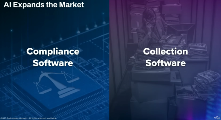 从投资角度看,这创造了巨大的机会。Alex说他们的工作是找到能让软件市场看起来很小的公司。我理解这句话的深意:不要局限于传统的软件市场,而要看劳动力市场。一个看起来只有几百万软件市场的行业,可能有几十亿的劳动力市场。如果你能用软件捕获哪怕一小部分劳动力市场,就能建立一个巨大的业务。